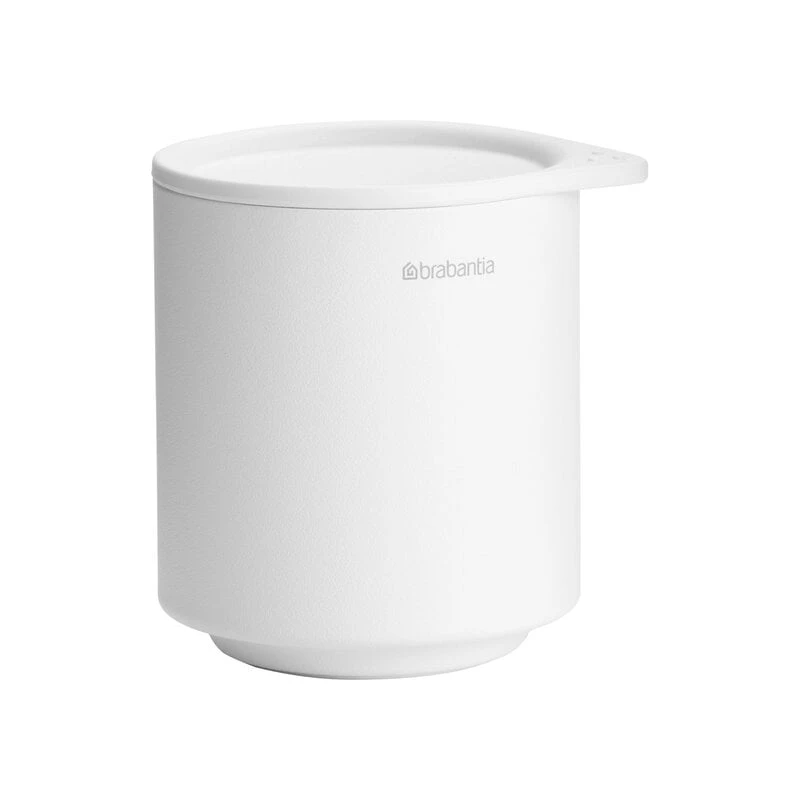 Brabantian MindSet-sarjan säilytyspurkki viimeistelee kylpyhuoneen ja WC-tilan ilmeen minimalistisella muotoilullaan. Silikonisella kannella varustetussa metallipurkissa vanulaput, korut ja muut pienet tarve-esineet pysyvät siististi suojassa pölyltä ja vesiroiskeilta. Kaunis säilytin toimii myös ilman kantta vaikkapa meikkisiveltimien säilyttämiseen. Ruostumattomien materiaaliensa puolesta MindSet-säilytyspurkki sopii erinomaisesti kaikenlaisiin kosteisiin tiloihin.