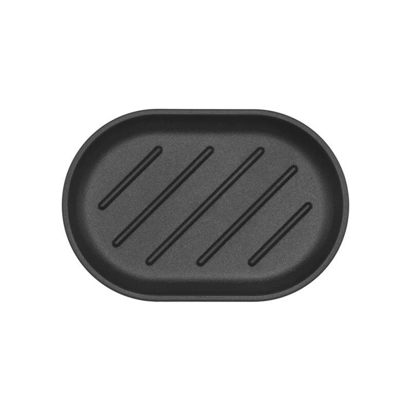 Brabantian MindSet-sarjan saippua-astia viimeistelee kylpyhuoneen ja WC-tilan ilmeen minimalistisella muotoilullaan. Metallista valmistetun saippuakupin muovinen sisäosa on helppo irrottaa puhdistusta ja ylimääräisen veden valuttamista varten ja sen uritettu pohja huolehtii, että palasaippua pääsee kuivumaan kunnolla pesukertojen välillä. Liukuestepohja pitää saippua-astian tiukasti paikoillaan kaikenlaisilla pinnoilla.