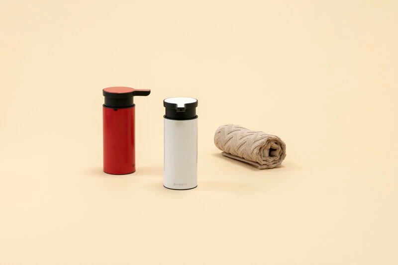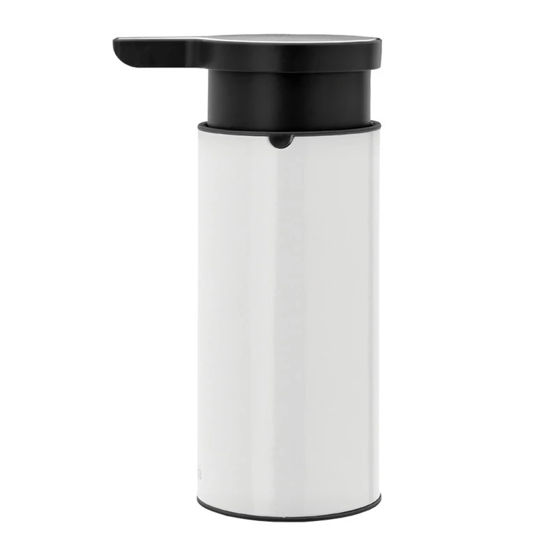 Brabantian Profile-saippua-annostelija on ehdottoman tyylikäs valinta niin kylpyhuoneeseen kuin keittiötiloihin. Liukumattomalla pohjalla viimeistelty saippuapumppu pysyy vakaana ja sen suuri täyttöaukko varmistaa käytettävyyden. Varta vasten vuotoja estämään tarkoitettu muotoilu pitää saippuapullon puhtaana päivästä toiseen, ja irrotettavan sisäpullon ansiosta se on helppo puhdistaa huolellisesti. Monikäyttöinen pumppupullo toimii mainiosti myös shampoon ja voiteiden annostelijana. 200 millilitran saippua-annostelija sopii materiaalinsa puolesta erinomaisesti kosteisiin tiloihin.