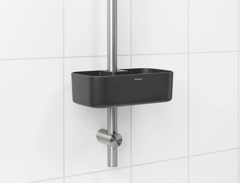 Brabantian ReNew-sarjan suihkuteline pitää shampoot ja suihkusaippuat kätevästi käden ulottuvilla. Teline on helppo kiinnittää suihkutankoon halutulle korkeudelle, ja se kestää jopa kahden kilon painon – telineeseen saa siis mahdutettua vaikka useammankin putelin! Suihkutelineen pohjalle ei kerry vettä, sillä se pääsee valumaan pois telineen pohjassa olevista aukoista.