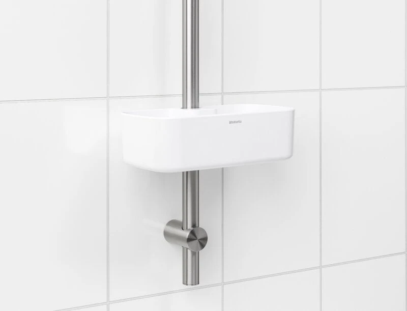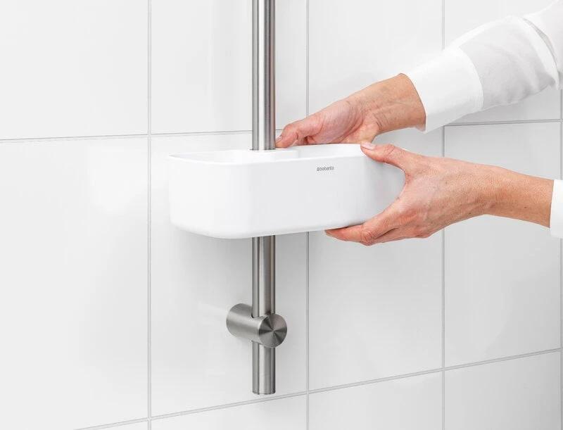 Brabantian ReNew-sarjan suihkuteline pitää shampoot ja suihkusaippuat kätevästi käden ulottuvilla. Teline on helppo kiinnittää suihkutankoon halutulle korkeudelle, ja se kestää jopa kahden kilon painon – telineeseen saa siis mahdutettua vaikka useammankin putelin! Suihkutelineen pohjalle ei kerry vettä, sillä se pääsee valumaan pois telineen pohjassa olevista aukoista.