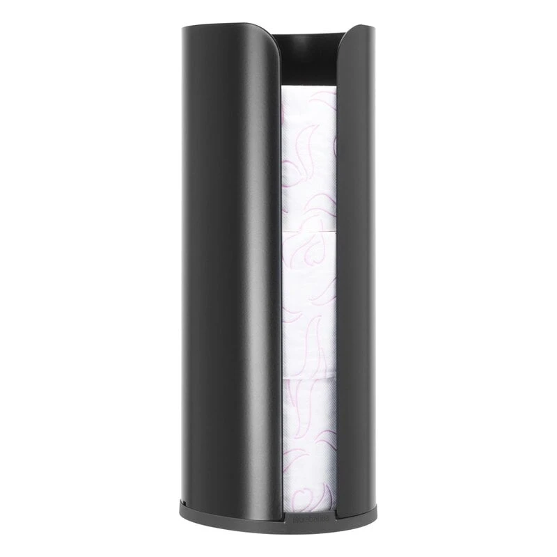 Brabantian ReNew-sarjan WC-rullateline tarjoaa tyylikkään ja huomaamattoman säilytystilan WC-paperirullille suojaten niitä samalla pölyltä ja vesiroiskeilta. Minimalistiseen WC-paperitelineeseen saa säilöön kolme tavallista WC-paperirullaa.