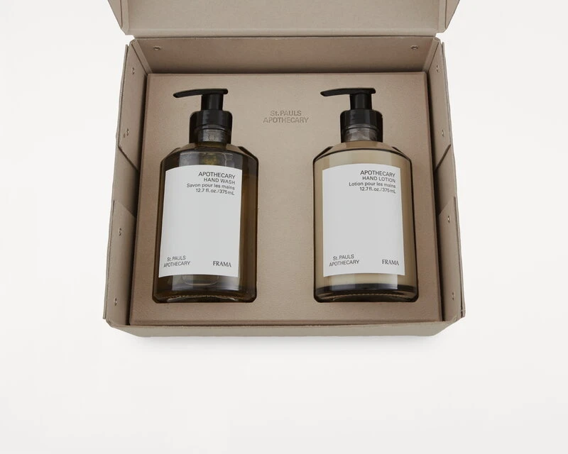 Framan St. Pauls Apothecary -kokoelmaan kuuluu luonnollisista ja luomutuotetuista raaka-aineista valmistettuja ylellisiä hyvinvointituotteita, joissa on käytetty aitoja eteerisiä öljyjä. Sekä käsisaippua että -voide on pakattu tyylikkääseen uudelleentäytettävään lasipulloon, jotka voidaan säilyttää kätevästi kiinnittämällä ne saman sarjan seinätelineeseen. Hellät, tuoksumaailmaltaan sukupuolineutraalit tuotteet sopivat kaikille ihotyypeille ja päivittäiseen käyttöön, joten Apothecary-pakkaus onkin mainio lahjaidea, kun tahdot hemmotella rakkaimpiasi!