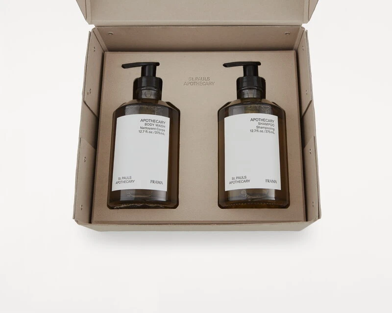 Framan St. Pauls Apothecary -kokoelmaan kuuluu luonnollisista ja luomutuotetuista raaka-aineista valmistettuja ylellisiä hyvinvointituotteita, joissa on käytetty aitoja eteerisiä öljyjä. Sekä shampoo että suihkusaippua vartalovoide on pakattu tyylikkääseen uudelleentäytettävään lasipulloon, jotka voidaan säilyttää kätevästi kiinnittämällä ne saman sarjan seinätelineeseen. Hellät, tuoksumaailmaltaan sukupuolineutraalit tuotteet sopivat kaikille ihotyypeille ja päivittäiseen käyttöön, joten Apothecary-pakkaus onkin mainio lahjaidea, kun tahdot hemmotella rakkaimpiasi!