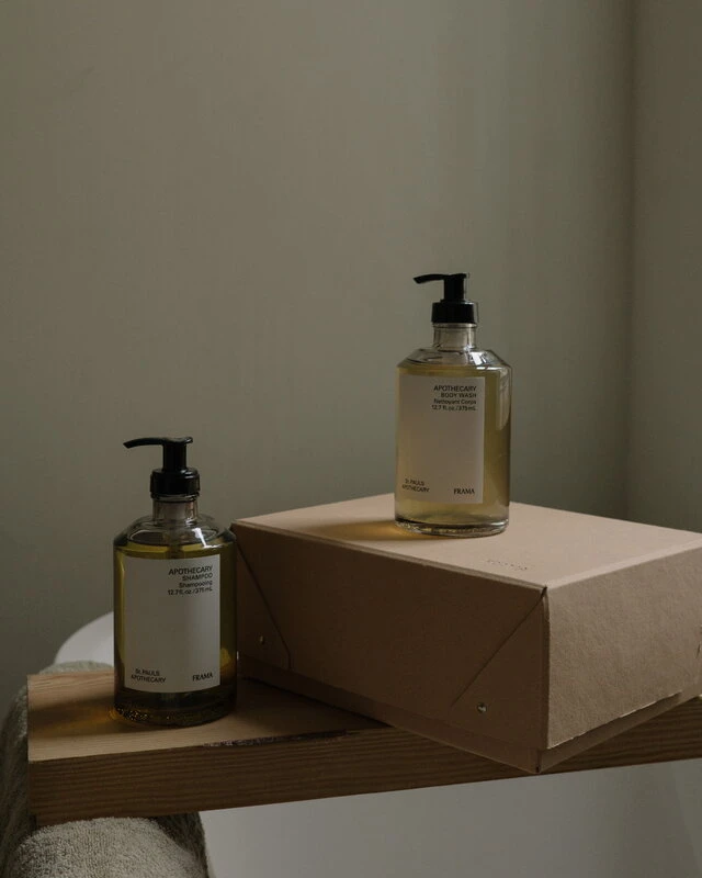 Framan Apothecary-lahjapakkaus sisältää kaksi tehokkaasti puhdistavaa ja kosteuttavaa, mutta lempeän hellävaraista tuotetta kehollesi: Apothecary-shampoon sekä saman sarjan suihkugeelin. Tanskassa valmistetut tuotteet ovat täysin vegaanisia eikä niitä ole testattu eläinkokein.
