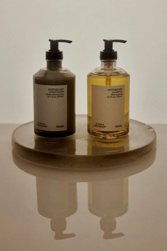 Framan Apothecary-shampoo puhdistaa hiukset tehokkaasti mutta hellävaraisesti ja jättää jälkeensä pehmeän tunnun sekä miellyttävän, kevyen tuoksun. Santelipuun, seetrin ja ylang-ylangin aromeilla viimeistelty shampoo on pakattu uudelleentäytettävään lasipulloon, joka voidaan kiinnittää saman sarjan seinätelineeseen. Sopii kaikille hiustyypeille ja päivittäiseen käyttöön. Valmistettu Tanskassa.