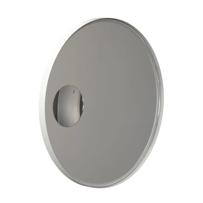 Tanskalaisen Frostin Unu 4140 -peiliä reunustavat ohuesta metallilevystä valmistetut pyöreät kehykset, ja peilin sivuun on upotettu pieni suurentava peili. Muotoilutoimisto Bønnelycke MDD:n suunnittelemaa Unu-sarjaa hallitsevat graafinen selkeys ja täsmällisen geometriset muodot. Minimalistisen ilmeensä ansiosta Unu-peilit löytävät paikkansa niin eteisestä, kylpyhuoneesta kuin makuuhuoneestakin, ja ne toimivat hyvin myös useamman peilin ryhminä.