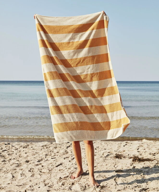 HAYn Frotté Stripe -jättipyyhe on kuvioitu leveällä kaksivärisellä raitakuosilla, joka on suunnittelija Amanda Borbergin käsialaa. Sertifioidusta puuvillasta valmistettu Frotté Stripe -jättipyyhe tuo tyylikkään väriläiskän kylpyhuoneen sisustukseen, ja sen pehmeä ja imukykyinen froteepinta toimii yhtä hyvin myös uimarannalla tai -altaalla.