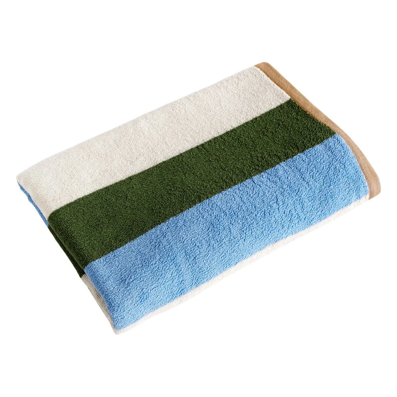 HAYn Trio-kylpypyyhkeet tuovat mieleen värikkäät rantamajat ja jäätelökesän. Reippaan geometrisen raitakuosin ja murrettujen sävyjen vastustamaton yhdistelmä raikastaa myös kylpyhuoneen, ja pehmeästä puuvillasta valmistettuun ylellisen suureen pyyhkeeseen on suloista kääriytyä niin uinnin kuin suihkunkin jälkeen. Täydennä tyyli HAYn Trio-kylpymatolla ja tuo kesän tuntu kylpyhuoneeseen ympäri vuoden.