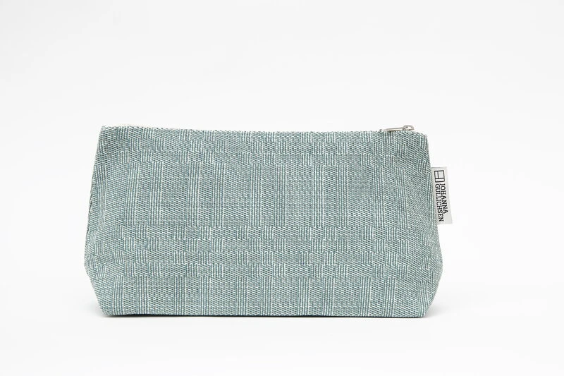Johanna Gullichsenin Selene-kosmetiikkalaukkua koristaa herkkä, mutta vetovoimainen kuosi, joka lainaa nimensä kreikkalaisesta mytologiasta, kuun jumalatar Seleneltä. Vähäeleinen, mutta vaikuttava kuosi kutsuu tutkimaan ja tarkastelemaan – lähietäisyydeltä ihasteltuna taidokkaasti kudotun kankaan koko kauneus avautuu aivan uudella tavalla. Tukevasta, luomupuuvillaisesta verhoilukankaasta valmistettu Selene-kosmetiikkalaukku kulkee kätevästi matkassa mukana ja kaunistaa kylpyhuoneen. Tuotteet on suunniteltu ja kudottu Suomessa.