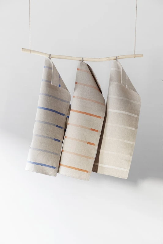 Lapuan Kankureiden Linnea-käsipyyhettä rytmittää Kaksikko-duon eli Wesley Waltersin ja Salla Luhtaselan suunnittelema graafinen raitakuosi, jossa samat sävyt vuorottelevat tummempina ja vaaleampina. Pohjavärinä on kaunis, luonnollinen pellava. Sataprosenttisesta pellavasta valmistettu pyyheliina on kudottu Lapuan Kankureiden omalla kutomolla Pohjanmaalla.