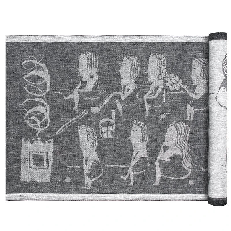 Lapuan Kankureiden Naisten Sauna -laudeliinaa koristaa Matti Pikkujämsän veikeä kuvitus, joka kuvaa vihdantuoksuista löylyhetkeä naisten vuorolla. Perinteikäs ja lujalaatuinen laudeliina on valmistettu eurooppalaisen pellavan ja luomupuuvillan sekoituksesta. Naisten Sauna -laudeliina on kudottu Lapuan Kankureiden omalla kutomolla Pohjanmaalla.