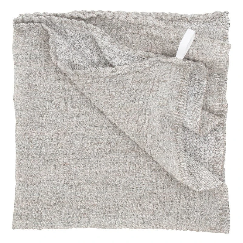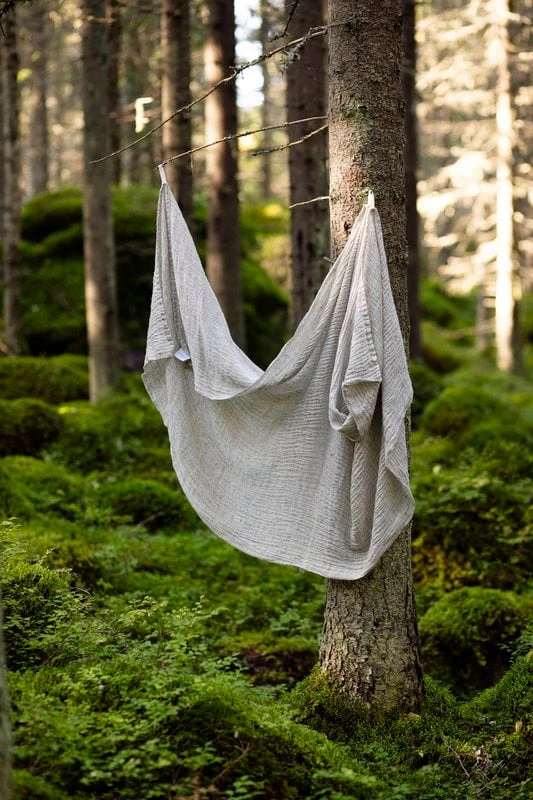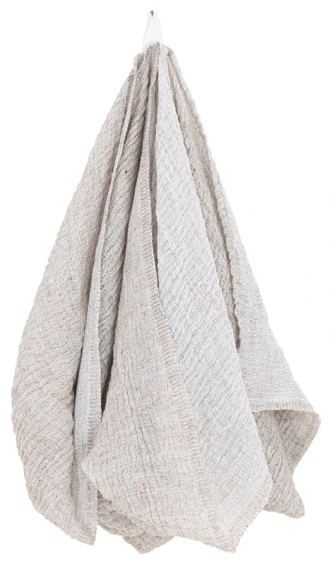 Lapuan Kankureiden Nyytti-jättipyyhettä sävyttää Elina Airikkalan suunnittelema luonnonläheisen kaunis kaksivärinen kudos. Pyyhkeen reunoilta löytyy neljä ripustuslenkkiä, joiden avulla pyyhkeen voi ripustaa tai kietoa ylleen monella eri tavalla.