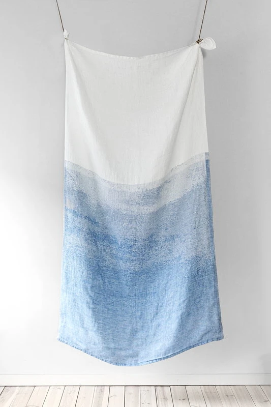 Lapuan Kankureiden Saari-jättipyyhettä värittää Aoi Yoshizawan suunnittelema tunnelmallinen, kaksisävyinen kuosi, joka vie ajatukset kauas ulapoille ja saaristomaisemiin. Saari-pyyhe on valmistettu sataprosenttisesta pellavasta ja kudottu Lapuan Kankureiden omalla kutomolla Pohjanmaalla.