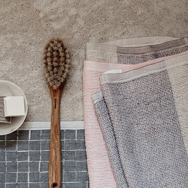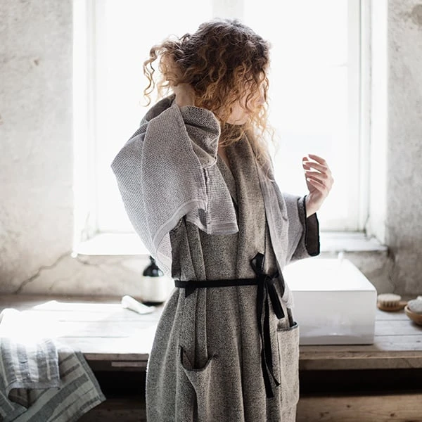Lapuan Kankureiden Terva-jättipyyhkeeseen on ihana kietoutua uintireissun tai pitkän saunan jälkeen – sopiipa se hyvin myös piknikviltiksi puistoon tai istuinalustaksi hiekkarannalle! Iso pyyhe on muiden Terva-tuoteperheen pyyhkeiden tapaan valmistettu Euroopassa tuotetusta pellavasta ja tencel-puuvillalangasta Öko-Tex-standardin mukaan. Materiaali on kevyttä, nopeasti kuivuvaa ja imukykyistä, ja tuntuu miellyttävän pehmeältä paljasta ihoa vasten. Terva-pyyhe on valmistettu Lapuan Kankureiden kutomolla Pohjanmaalla.