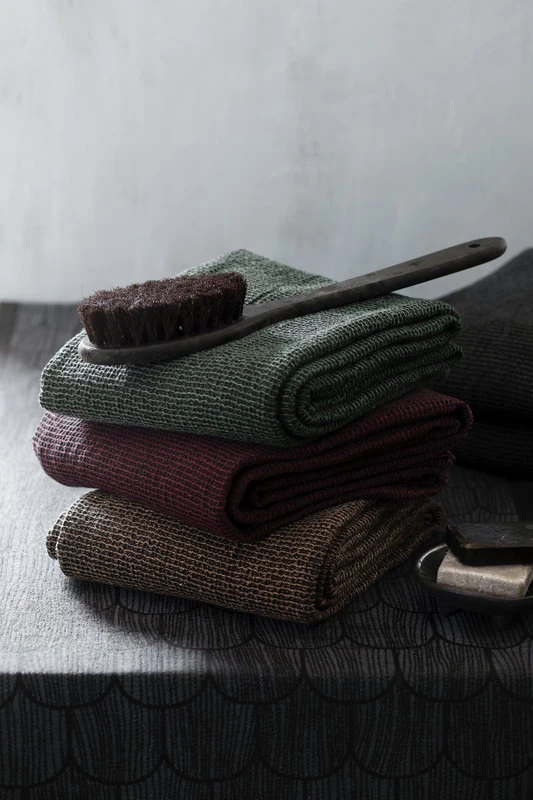 Lapuan Kankureiden Terva-jättipyyhkeeseen on ihana kietoutua uintireissun tai pitkän saunan jälkeen – sopiipa se hyvin myös piknikviltiksi puistoon tai istuinalustaksi hiekkarannalle! Iso pyyhe on muiden Terva-tuoteperheen pyyhkeiden tapaan valmistettu Euroopassa tuotetusta pellavasta ja tencel-puuvillalangasta Öko-Tex-standardin mukaan. Materiaali on kevyttä, nopeasti kuivuvaa ja imukykyistä, ja tuntuu miellyttävän pehmeältä paljasta ihoa vasten. Terva-pyyhe on valmistettu Lapuan Kankureiden kutomolla Pohjanmaalla.