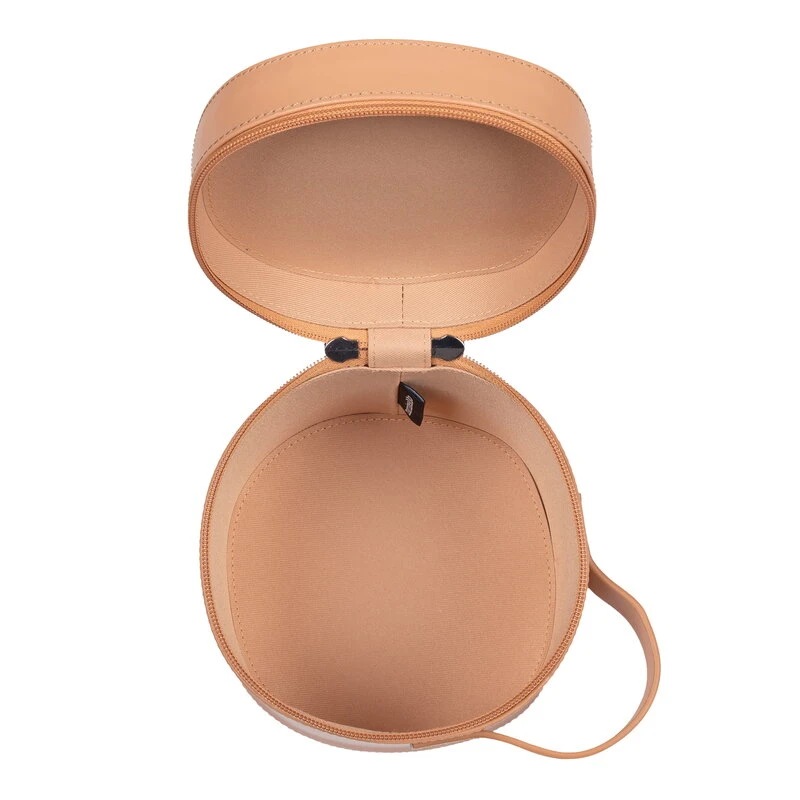 Marimekon Liuske-kosmetiikkalaukku on valmistettu kierrätetystä nahasta ja saanut inspiraation muotoonsa luonnonkivistä. Luonnonvärisessä säilyttimessä on kätevä kantokahva sekä suljettava vetoketju, jonka vetimiä koristaa Marimekko-logot. Pelkistetyn kosmetiikkalaukun kannen päällä on nahkainen nappi ja sisäpuolella suojaava tvillivuori.