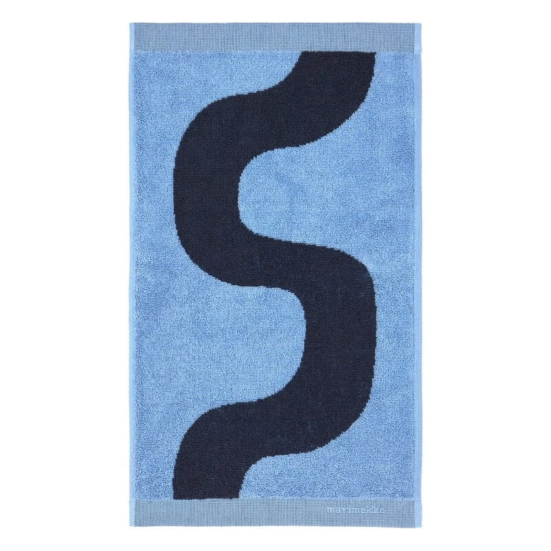 Marimekon Seireeni-vieraspyyhettä koristaa lämpimien vesien lempeää liikettä toistava Seireeni-kuosi, jonka on suunnitellut Maija Isola 1960-luvulla. Kutsuvassa kuosissa voi kuulla myös kaikuja kreikkalaisessa mytologiassa kuvattujen seireenien ylimaallisen kauniista laulusta.