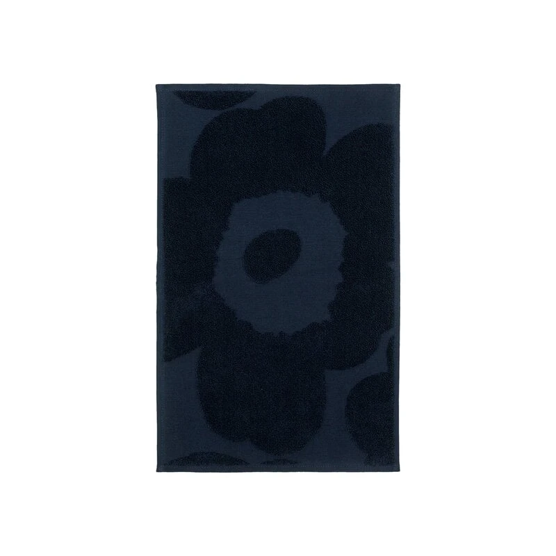 Marimekon Unikko-vieraspyyhettä elävöittää Maija Isolan suunnittelema ikoninen kukkakuosi dramaattisessa tummansinisen sävyssä. Pehmeästä puuvillafroteesta valmistettu Unikko-vieraspyyhe sopii myös mainiosti vaikkapa kasvopyyhkeeksi ja tuo tyylikkään lisän kylpyhuoneen sisustukseen. Täydennä tyyli muilla Unikko-sarjan pyyhkeillä.