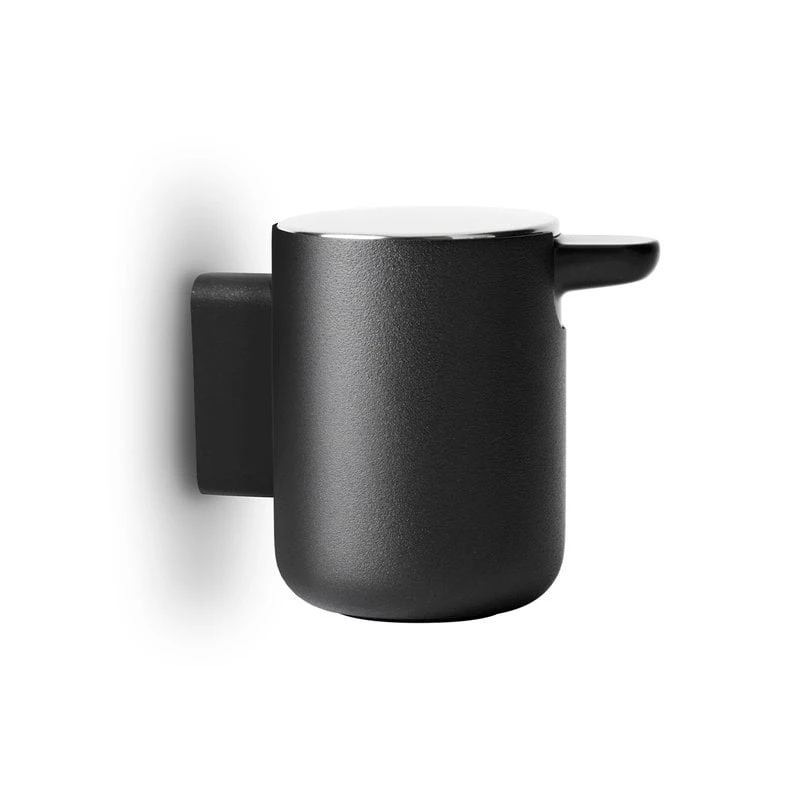 Menun käytännöllinen saippuapumppu on Norm Architectsin käsialaa. Seinään kiinnitettävä saippuapullo säästää tilaa ja on helppo puhdistaa, käyttää ja täyttää. Metallikannen kevyt painallus annostelee saippuan.