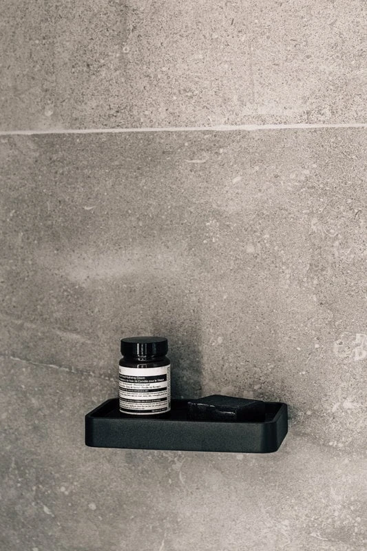 Menun suihkuhylly tuo kylpyhuoneeseen tanskalaisen minimalismin henkeä. Mattamaalattu suihkuhylly on muotoiltu selkeäksi, graafiseksi ja äärimmäisen funktionaaliseksi. Suihkuhyllyn on suunnitellut Norm Architects.