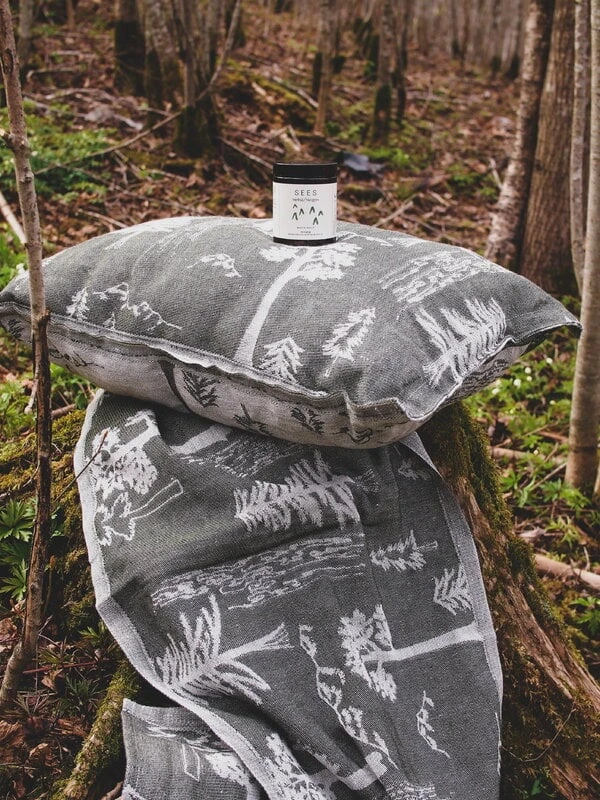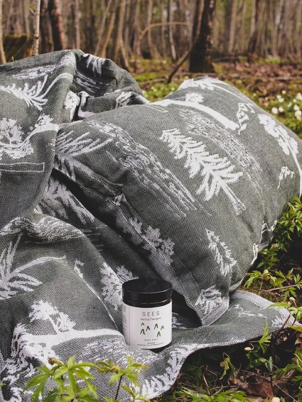 Metsä/Skogenin Boletus-saunatyyny tuo suomalaisen havumetsän kasvit ja puut saunaasi. Iso saunatyyny tarjoaa pehmeän tuen lauteilla makoillessa tai istuessa. Tyylikäs Boletus-saunatyyny on niin kaunis, että sitä voi huoleti käyttää myös muualla kuin saunassa. Saunatyyny sopii hyvin esimerkiksi sisustustyynyksi sohvalle tai koristetyynyksi sängyn päälle. Kaksipuoleisen tyynyn upean metsäkuviokuosin on suunnitellut Maija Louekari. Tyynyn toinen puoli on vihreä ja toinen valkoinen.