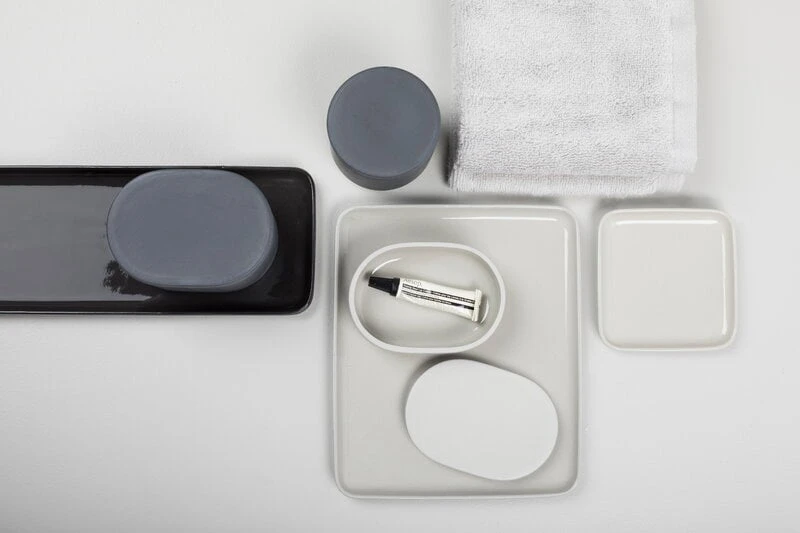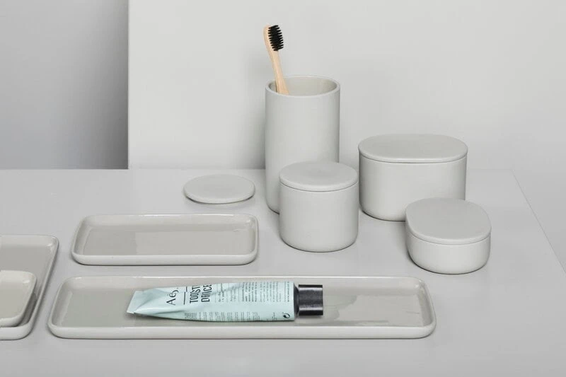 Ovaalinmuotoinen Cose-säilytyspurkki kuuluu Bertrand Lejolyn suunnittelemaan samannimiseen kokoelmaan, jonka esineet sopivat niin kylpyhuoneen, keittiön kuin toimiston piensäilytykseen. Posliinista valmistettujen esineiden muotokieli on viehättävän pelkistetty, mutta ei suinkaan kliininen – pyöristetyt reunat ja lasittamaton ulkopinta tuovat kokoelman ilmeeseen pehmeyttä. Cose-sarja on samaan aikaan ajankohtainen ja ajaton, ja sen esineet onkin helppo kuvitella niin moderniin kuin perinteisempään sisustukseen.