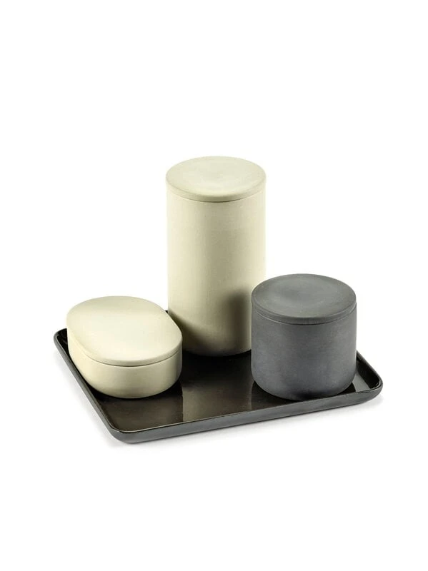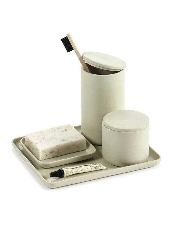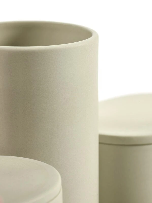 Cose-säilytyspurkki kuuluu Bertrand Lejolyn suunnittelemaan samannimiseen kokoelmaan, jonka esineet sopivat niin kylpyhuoneen, keittiön kuin toimiston piensäilytykseen. Posliinista valmistettujen esineiden muotokieli on viehättävän pelkistetty, mutta ei suinkaan kliininen – pyöristetyt reunat ja lasittamaton ulkopinta tuovat kokoelman ilmeeseen pehmeyttä. Cose-sarja on samaan aikaan ajankohtainen ja ajaton, ja sen esineet onkin helppo kuvitella niin moderniin kuin perinteisempään sisustukseen.