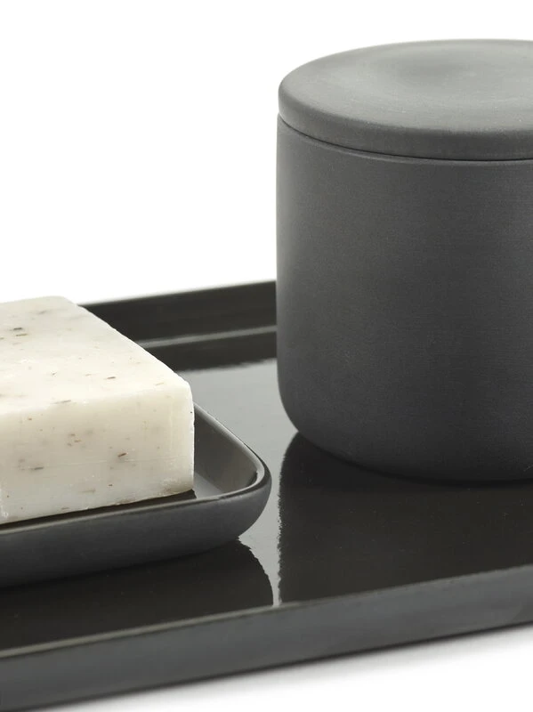 Seraxin Cose-säilytyspurnukka tarjoaa helpon tavan tuoda kylpyhuoneeseen ripaus ylellistä spa-tunnelmaa. Rasia on kooltaan täydellinen puhdistuslappujen tai pinnien ja hiuslenkkien säilytykseen, mutta yhtä lailla se toki sopii myös keittiöön vaikkapa sokeripurkiksi tai toimistoon kynien säilytykseen. Sisäpuolelta rasian pintaa peittää kiiltävä lasite, mutta ulkopuoli lasittamaton, ja sen karheammassa pinnassa näkyykin kauniisti myös käsityön jälki.