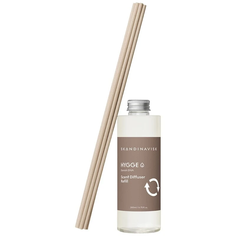 Skandinaviskin Hygge-huonetuoksussa on miellyttävä aromi, jossa voi aistia mustan teen, mintun, kuivatun omenan ja kanelin aromeja. Hygge viittaa skandinaaviseen, erityisesti tanskalaiseen, taitoon luoda kodikkuuden ja yhteenkuuluvuuden tunne pieniinkin arjen hetkiin.