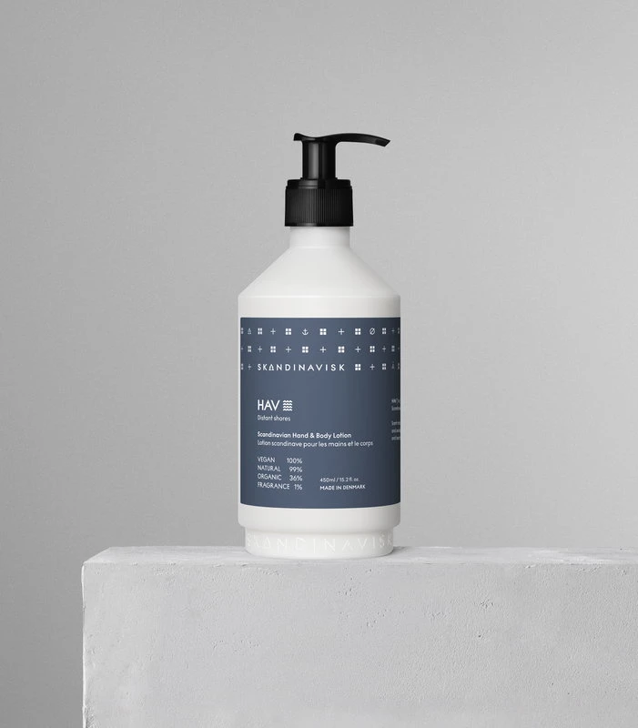 Skandinaviskin Hav-voide tuo miellyttävän tuulahduksen Skandinavian loputtomilta rannikoilta ja pohjoisen kylmiltä merialueilta: sen tuoksussa voi aistia meren suolaisuuden, merilevän, rannoilla kasvavan kurtturuusun sekä orapihlajan. Kosteuttava käsi- ja vartalovoide on valmistettu Tanskassa luonnollisista raaka-aineista.