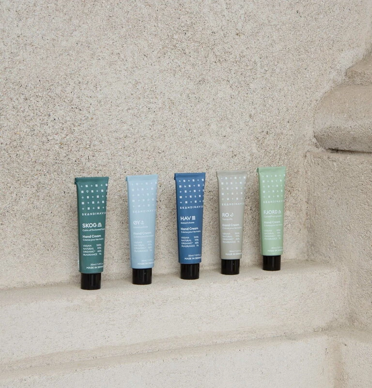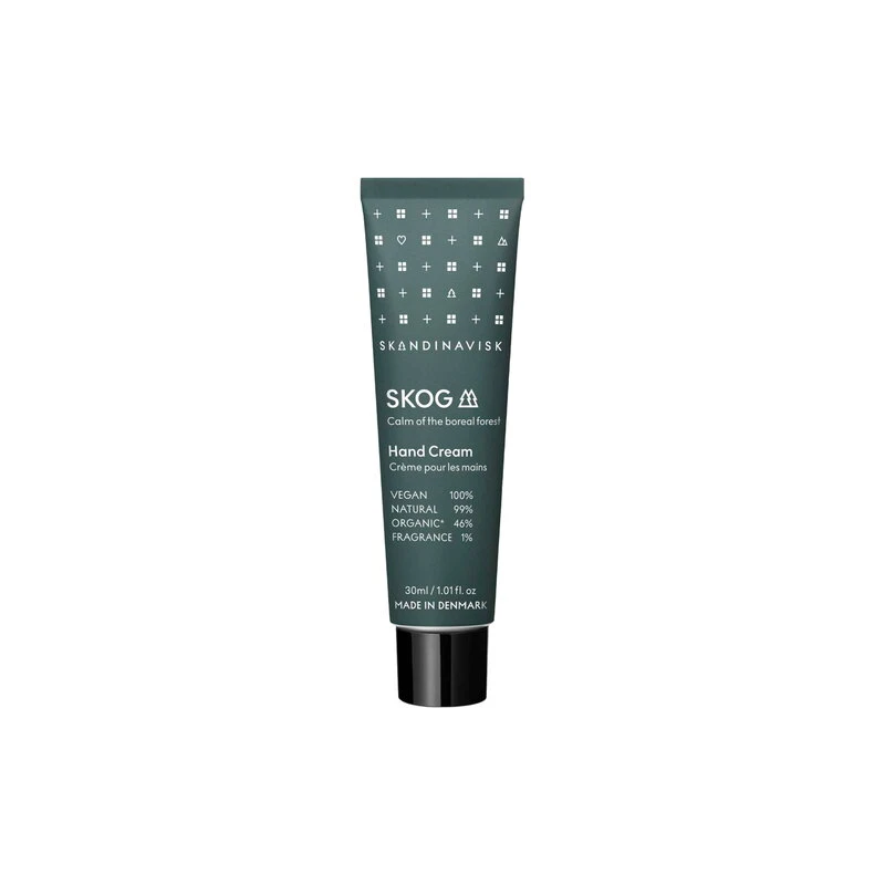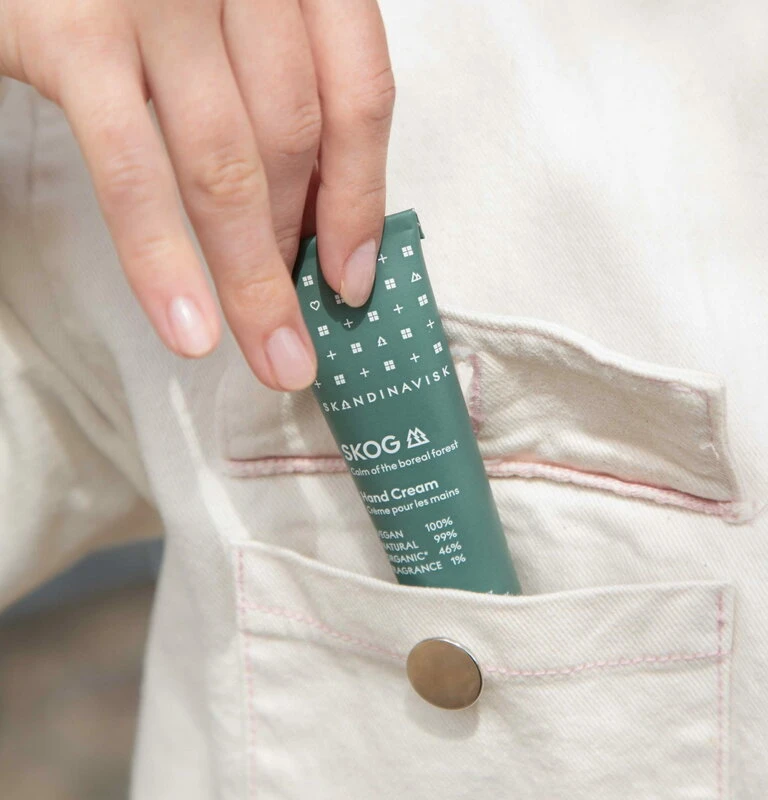 Skandinaviskin minikokoisessa Skog-käsivoiteessa voi aistia männyn, kuusen, kielon ja koivumahlan tuoksun – nimensä mukaisesti Skog kuvaa pohjoisten havumetsien ainutlaatuista tuoksumaailmaa. Kosteuttava käsivoide on valmistettu Tanskassa luonnollisista raaka-aineista, kuten paikallisesta lähdevedestä, ja sen kauniisti kuvioitu pakkaus on täysin kierrätettävä.