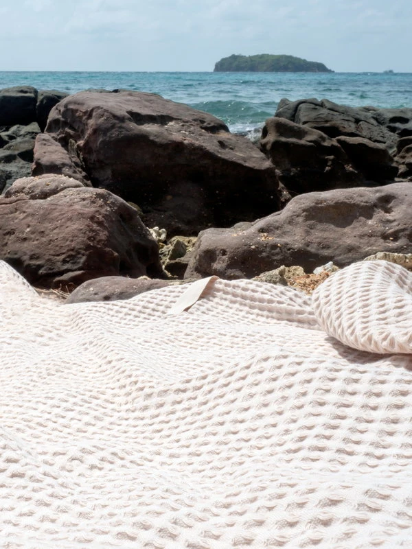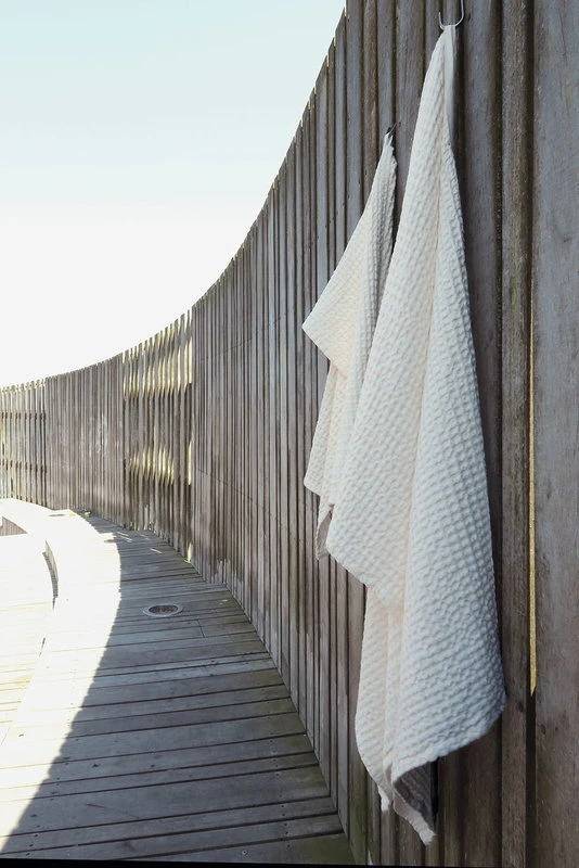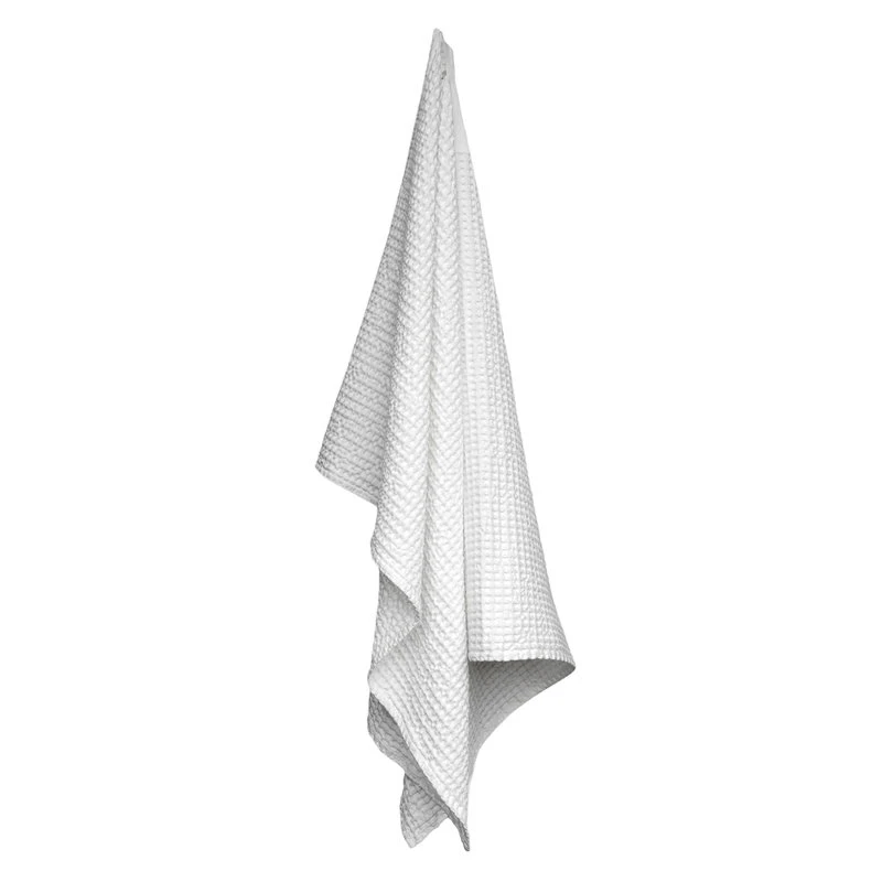The Organic Companyn Big Waffle -jättipyyhe tuo kylpyhuoneeseen modernia ilmettä ja rentoa tunnelmaa. Vohvelikuvioinen jättipyyhe on valmistettu GOTS-sertifioidusta luomupuuvillasta, ja suuren kokonsa ansiosta monikäyttöinen pyyhe sopii myös torkkupeitoksi tai piknik-alustaksi.