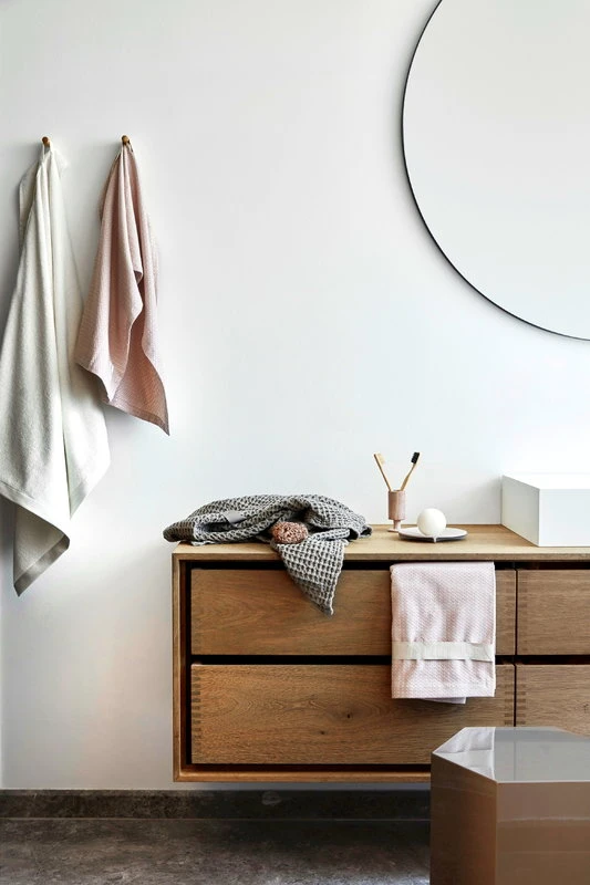 The Organic Companyn Big Waffle -jättipyyhe tuo kylpyhuoneeseen modernia ilmettä ja rentoa tunnelmaa. Vohvelikuvioinen jättipyyhe on valmistettu GOTS-sertifioidusta luomupuuvillasta, ja suuren kokonsa ansiosta monikäyttöinen pyyhe sopii myös torkkupeitoksi tai piknik-alustaksi.